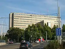 Dům Radost (translated from Czech: House of Joy) is a functionalist building in Prague, Czech Republic. It is located next to Winston Churchill square in Žižkov district. It was built from 1932 to 1934. This 52 metres (171 ft) high building with 13 floors and cross floor plan inspired by French architect Le Corbusier was once the tallest office building in the country. The complex serves as offices, apartments, theater, cinema, cafe and observatory since 2019.[1] Since 1964, it is a cultural monument of the Czech Republic.