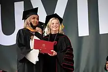 In July 2016, Sister Denise Roche stepped down from serving as D'Youville president for 36 years and was succeeded by interim President William Mariani.[54] In December 2016 the Board of Trustees appointed Lorrie Clemo to become the next president.[55] Clemo officially began her appointment in January 2017 as the 15th President of D'Youville and as the first lay president to lead the institution.[56]