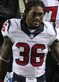 He started the Houston Texans' season-opener against the Washington Redskins' and recorded eight combined tackles and his first career sack on Robert Griffin III during their 17-6 victory.[23] On October 26, 2014, he collected three combined tackles, deflected two passes, and intercepted a pass attempt by Tennessee Titans' quarterback Zach Mettenberger during the Texans' 30-16 victory.[24] The next game, he tied his season-high of eight combined tackles, as the Houston Texans lost to the Philadelphia Eagles 21-31. He finished the season with a career-high 73 combined tackles (51 solo), six pass deflections, two interceptions, and a sack in 12 starts and 16 games.[18] Pro Football Focus ranked him the 78th best safety out of 87 during the 2014 season. Under Defensive Coordinator Romeo Crennel, he was used as a safety/linebacker hybrid and was primarily used in the box for run support.[19]