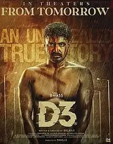 D3 is a 2023 Indian Tamil-language crime thriller written and film directed by Bala. The film stars Prajin,Vidya Pradeep, Charle, in the lead roles with Rahul Madhav, Abhishek Kumar, Varghese Mathew, Gayathiri Yuvaraj and Aroul D Shankar portraying supporting roles. The film was released theatrically on 17 March 2023.[1][2]