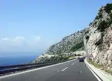 The D8 state road is the Croatian section of the Adriatic Highway, running from the Slovenian border at Pasjak via Rijeka, Senj, Zadar, Šibenik, Split, Opuzen and Dubrovnik to the border with Montenegro at Karasovići.[maps 1][1] Most of the D8 state road remains single carriageway, though with some dual carriageway stretches. The total length of the road through Croatia is 643.1 kilometres (399.6 mi).[2]