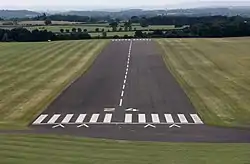 The airfield runway was originally a grass strip.[9] During the bad winter of 1940–4 landing heavy aircraft, such as Vickers Wellingtons and Avro Ansons, turned the strip into a mudbath. This prompted the construction of a paved runway of 1,146 yards (1,048 m) long and 46 yards (42 m) wide.[10]