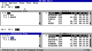 DOS Shell is a file manager that debuted in MS-DOS and PC DOS version 4.0, released in June 1988. It was no longer included in MS-DOS version 6, but remained part of the Supplemental Disk. The Supplemental Disk could be ordered or could be downloaded through Microsoft's FTP server. DOS Shell was retained in PC DOS until PC DOS 2000.