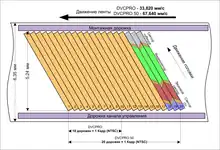 When recorded to tape, DVCPRO uses wider track pitch - 18 μm vs. 10 μm of baseline DV, which reduces the chance of dropout errors during recording. Two extra longitudinal tracks provide support for audio cue and for timecode control. Tape is transported 80% faster compared to baseline DV, resulting in shorter recording time. Long Play mode is not available.