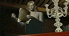 Development of D lasted about one year and was directed by Warp president Kenji Eno.[4] Eno was heavily inspired by Polarware's Transylvania adventure game series and he believes D would have never been created if it were not for playing those games. Eno and Warp were still relatively unknown in the industry, and D would be their first major title. With this in mind, Eno felt that he was gambling his development career on D, and if it were not successful he would stop developing games.[6] There were three phases to D's development: the adventure game structure, the story creation, and finally violence was added. Since the adventure gameplay was largely finished before the story began to take fruition, flashbacks were added to detail the plot. The plot was largely based on that of Dracula, but Eno found it too boring, and so added violence and cannibalism to make the game more striking.[7] The FMVs were created using Amiga 4000s.[8]