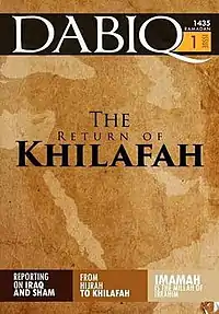 ![]() The English language edition of Dabiq's first issue "The Return of Khilafah". | |