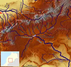 ![]() The headwaters of the Draa, with the Dades (top right to center) | |