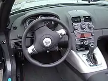 For the 2008 model year, GM offered the Carbon Flash Special Edition Saturn Sky. Unlike the two Limited Edition models launched later in 2009, its production was slightly higher at 550 units.[5] The Carbon Flash Special Edition featured a unique metallic Carbon Flash paint color, removable silver racing stripe standard, and Monsoon premium audio standard. The largest differentiator, however, is Carbon Flash Edition's silver inserts in the interior seating and steering wheel that provide a black-on-silver appearance.