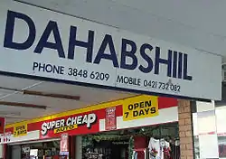 Dahabshiil (Somali: Dahabshiil, Arabic: دهب شيل) is a Somali funds transfer company, and is the largest money-transfer business in Africa.[1] It's headquartered in Burao, Somaliland.[2] Formed in 2004, the firm operates from over 24,000 outlets and employs more than 2,000 people across 126 countries.[3] It provides financial services to international organisations, as well as to both large and small businesses and private individuals.[4][5][6] The company is also involved in community building projects in Somalia.[4]