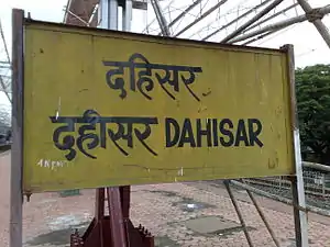 With the construction of the railway line connecting Dahisar to the city of Mumbai in 1867,[1] came the first lot of migrants, the people from Sindhudurg region of Konkan. These migrants established the first planned residential areas of Dahisar - Maratha Colony in Dahisar East and Mhatre Wadi in the West. The Railway authorities wanted to name the Railhead at Dahisar as Mount Poinsur, but the locals opposed this move and forced the authorities to name it as Dahisar. Currently, it has 4 platforms with 2 for Slow line (Up and Down) and 2 for fast line (Up and Down). All platforms can handle 15-coach Suburban trains.