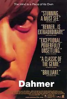 Dahmer is a 2002 American drama film written and directed by David Jacobson, and co-written by David Birke.[1] A limited theatrical release, it is based on the crimes of Jeffrey Dahmer, a serial killer, who killed seventeen men and boys in Bath, Ohio and Milwaukee, Wisconsin between 1978 and 1991. It stars Jeremy Renner as Dahmer, and co-stars Artel Great, Matt Newton, Dion Basco and Bruce Davison.