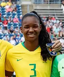 - Aleixo, Caroline (17 July 2018). "Zagueira da Seleção se firma na Europa e revela prioridade: ajudar pais e 13 irmãos" (in Portuguese). Rede Globo. Retrieved 6 January 2019.