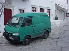The Piaggio Porter was a licensed version of the seventh generation Hijet manufactured in Pontedera, Italy, between 1992 and 2021, and sold with diesel, LPG, CNG or electric motors. These Italian-built vans were also sold with Daihatsu Hijet nameplates in certain market to get around quota restrictions on Japanese-made vehicles, while some passenger versions were also sold as the Innocenti Porter. They were originally equipped with a 48 PS (35 kW) 1.0 petrol or a 35 PS (26 kW) 1.2-litre Lombardini diesel.[52] Top speeds for these early models are 119 and 110 km/h (74 and 68 mph) respectively.[52] More recent cars receive a 1269 cc petrol/LPG engine or a 1371 cc diesel.[7] The 1.3 offers 65 PS (48 kW) in either configuration while the 1.4 diesel only manages 38 PS (28 kW).[53] All of these Porter variants (S85) are based on the facelifted seventh generation of the Hijet (S82) which has its front wheel located below the front door and a mid-mounted engine. Since 2013 the Porter has also been manufactured at Piaggio's Baramati plant (Pune, India) for Asian markets.[54]