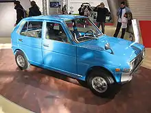 In April 1970, the front-wheel drive L38 Daihatsu Fellow Max was introduced to replace the rear-wheel drive Fellow. Originally only available as a two-door sedan and three-door van (L38V), a hardtop coupé with a lower roofline and a somewhat baroque front-end treatment was added in August 1971 (L38GL). SL and GXL Hardtops received standard front disc brakes. In October 1972 a four-door version (L38F) appeared; it was the only four-door Kei car at the time of its introduction. Dimensions were 2,995 x 1,295 mm as dictated by the Kei car regulations, although the wheelbase was stretched by 100 mm to 2,090 mm. The engine was a 360 cc two-cylinder two-stroke ("ZM4"), offering 33 PS (24 kW) at the time of introduction.[13] In July 1970 the SS version appeared, featuring a twin-carb, 40 PS (SAE) version of the ZM engine (ZM5) - a specific output of over 112 PS per litre. Top speed was 120 km/h, compared to 115 km/h (75 and 71 mph) for the lesser versions. In October 1972, for the '73 model year, engine outputs dropped somewhat, to 31 and 37 PS respectively to lower fuel consumption and meet new, more stringent emissions standards.[14] These engines were called ZM12 and ZM13 respectively.[15]