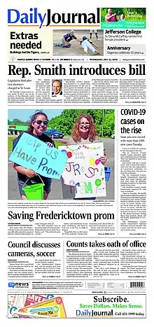 Dailyjournalonline.com, the online home of the Daily Journal,[3] delivers news and information from many sources. The site receives an average of 1.8 million page views per month with over 122 thousand unique visitors. The paper is owned by Lee Enterprises, along with sister publications Democrat News and Farmington Press.