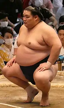 In the March 2019 tournament in Osaka Daishoho fell just short of a winning record with seven wins against eight losses.[5] However he remained in the top division at the same rank when the banzuke was released for the May 2019 tournament. In this tournament he secured his first winning record in the top division of 9–6, and was promoted to his highest rank to date of maegashira 9 for the July 2019 tournament. He lost to Enhō on the final day to fall to a 6–9 record in July,[6] and a disappointing 5–10 score in September saw him fall to maegashira 15 for the November tournament.