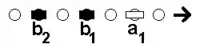 It is often useful to have an idea of the probability that a given piece can be removed in the next round. Suppose player A has a piece a1, and player B has a piece b1 a few positions behind a1 with no other pieces in between. If it is B's turn, B's chances of being able to remove a1 using b1 in this turn depends on how many positions b1 is behind a1: