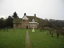 Behind the church is an area of woodland. In the wood is Hermit Cave, hewn out of the sandstone cliff by a 12th-century Derby baker who wished to live a life as a recluse. It is well preserved, measuring 6 yards by 3 with a doorway, two windows, a peephole and a niche for a light.