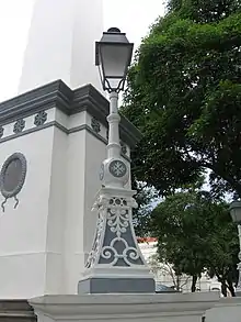 The Dalhousie Obelisk is an important architectural element in Empress Place but somewhat neglected and obscured by trees. It was designed by John Turnbull Thomson when he was a Government Surveyor. He was obviously inspired by "Cleopatra's Needle" on the Thames Embankment in London.