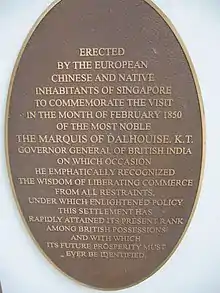 The Dalhousie Obelisk is a memorial obelisk in the Civic District of Singapore, located on the north bank of the Singapore River in the Downtown Core, within the Central Area in Singapore's central business district.