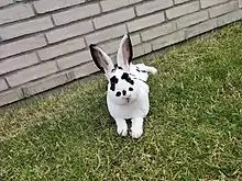 The rabbit originates from Germany[5] and France. Dalmatian rabbits are very active and friendly.[6] The rabbit is rare and depleting in Europe.[7][8]