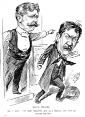 In February 1895 Edwardes presented another musical comedy, An Artist's Model, which was a considerable success, and had to be transferred to the Lyric Theatre in May to make way for another Bernhardt season at Daly's,[8] followed by Augustin Daly's next – and as it proved last – season with his company. Daly's comedy The Railroad of Love (an adaptation of a German play) was followed by Shakespeare's Two Gentlemen of Verona.[9] The latter had not been professionally staged in London since 1841, and despite respectful reviews and a starry cast including Rehan, Lewis, Tyrone Power, Frank Worthing and Maxine Elliott, it did not attract the public.[10] The production of A Midsummer Night's Dream that followed did better,[11] but as the theatre historians Mander and Mitchenson put it, "London had not responded to the Americanised classics as Daly had hoped."[4] Although the theatre retained his name for the remaining forty-three years of its existence, his company never returned, and for the next twenty years Daly's Theatre was run by Edwardes.[4]