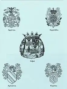 The House of Damalas (pl. Damalases; Greek: Δαμαλάς, pl. Δαμαλάδες, female version Damala; Greek: Δαμαλά) is a Greek Noble House with roots originating from the island of Chios. Created as a result of intermarriages among the Imperial House of Palaiologos to the Genoese Noble House of Zaccaria.[1][2][3] Officially established in the late 15th century[4], though there was also an unrelated ancient Greek family named Damalas/Damalis as well, which had settled in Byzantium long before the 330 A.D. establishment of the Eastern Roman Empire. Descendants of this unrelated house were also settled on the Aegean island of Kos.