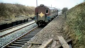 ![]() NIR Class 80 train passing the remains of Damhead station in 1982 | |