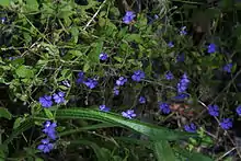 Dampiera hederacea, commonly known as the karri dampiera, is an erect perennial herb in the family Goodeniaceae. The species, which is endemic to the south-west of Western Australia, is a low spreading shrub which reaches 40 cm (16 in) across. It produces blue flowers between August and January in its native range.[2]