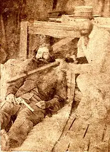 Daniel Morgan (30 April 1830 – 9 April 1865) was an Australian bushranger. Morgan has been described as "the most bloodthirsty ruffian that ever took to the bush in Australia"[1] and “one of the most determined and bloodthirsty of colonial freebooters”.[2] Many accounts of his activities, particularly in the years after his death, emphasise his brutality and erratic behaviour but Morgan had many sympathisers and informants in the districts where he carried out his activities. He was an expert bushman with superb horse-riding skills, a combination of abilities which enabled him to evade capture by the authorities for a significant period of time.[3]
