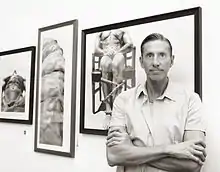 Dan Pyle was born in Wolf Point, Montana, and grew up in Washington state. Dan Pyle has been drawing since his childhood and was awarded for his works early on. However, his artistic career began as a dancer with the Pacific Northwest Ballet in Seattle, and was substantially influenced by his admiration for black and white photography. This cross fertilization is where his specific artistic style developed.[2] Moreover, Pyle’s work is marked by contrasts and the special light of a Jan Vermeer and a William Turner. Thematically, the human body with its muscles, shapes and movements are at the forefront of his work, which he is able to present authentically and expressively as a former ballet dancer.[3] After moving to California, Dan Pyle settled in West Hollywood, developing his detailed technique with new and unconventional materials.[4]