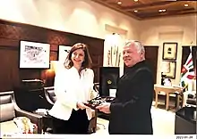 She serves as the President of the Board of Directors of Petra National Trust[3][4][5] and is a liaison with The Royal Hashemite Court and Jordanian government ministries.[6] She was named a UNESCO Goodwill ambassador in June 2017 by the UNESCO Director-General Irina Bokova.[7][8] Her advocacy for the cause of cultural heritage preservation and awareness resulted in their inclusion in two World Tourism Organization declarations[9][10][11][12] She presides over the Board of Trustees of the Petra National Trust[13] and is the elected president of the Jordan National Committee of the International Council on Monuments and Sites.[14] She is also an invited expert to the international board of ICOMOS.