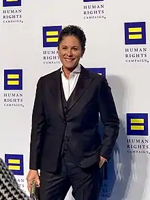 Dana Goldberg (born 1976) is an American comedian. She is especially known in the gay community, as Goldberg herself is gay. She is a weekly guest on The Stephanie Miller Show on SiriusXM and hosts her own podcast, Out in Left Field With Dana Goldberg on Advocate.com.[1] She hosts an annual show in Albuquerque, New Mexico.[2] In 2013, she was named a finalist in the Advocate's Stand Out: The National Queer Comedy Search.[3] In 2017, she hosted the Los Angeles Resist March.[4][5] Also in 2017, she performed at Trevor Live in New York City on a bill featuring John Oliver and Imagine Dragons.[5] In 2019, she spoke at Lambda Legal's annual National Liberty Awards.[6][7] In television, Goldberg has appeared on LOGO with her comedy special One Night Stand Up: Episode 4, filmed at San Francisco's Great American Music Hall.