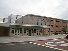 ![]() The newly renovated front entrance of Danbury High School, opened in 2018. | |