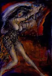 The Dance of Salomé is the title of a series of 160 works consisting of 85 paintings and 75 drawings created by Nabil Kanso in 1988 and 1995.[1] It is based on biblical and literary works with particular reference to Oscar Wilde’s 1891 play and Richard Strauss’s 1905 opera. The primary subject of all the works in the series is Salomé who is depicted in a sequence of scenes reflecting various nuances of perception in distinctive dance movement.[2]
