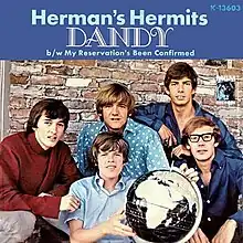 "Dandy" became a hit single in North America in 1966 as recorded by fellow UK group Herman's Hermits in that same time frame, reaching #1 in Canada on the RPM national singles chart[8] and #5 in the US on the Billboard Hot 100.[9] It also made #3 in New Zealand. This version was not released as a single in the UK.