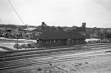 The York Railway Station was built on the north side of the tracks just east of Main Street around 1883. The GTR became part of Canadian National Railway in 1923, and by the 1940s the north yard was no longer used for freight and the roundhouse was demolished. The 11 freight storage tracks to the south of the station persisted until the late 1990s.[3] Under Canadian National the station became Danforth Railway Station.[4] The original GTR station building was demolished in 1974.[3]