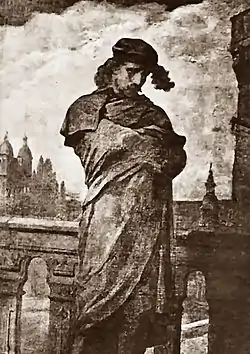 In November 1861 Bandmann returned to New York [8] where on January 15, 1863, he was well received in his English-language debut at Niblo's Garden as Shylock. Soon his Hamlet gained considerable attention from critics for his introduction of a number of innovations from German theatre, such as bringing his Ghost up from beneath the stage with leaves twitching to and fro matching Hamlet's anxiety. On September 1, 1863, Bandmann appeared at Niblo's in the first performance in New York of John Guido Methua's adaptation from the German of Emil Brachvogel, entitled Narcisse: or, The Last of the Pompadours. Soon afterwards Bandmann began a five-year tour of North America principally in the roles of Hamlet, Shylock, Othello, logo, Gloucester, Macbeth, Benedict and Narcisse.[7][9]