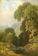 He sketched and painted in the northeastern United States,[15] including Maine, the Hudson River Valley, and Connecticut.[16] He also continued to work in adjacent Canadian provinces.[17][18] Grose was active as a painter in the Rocky Mountains area from the 1860s to the 1880s.[19] Other American locations included Florida and the Grand Canyon.[13] Some of his works deriving from his travels to India were highly rated by contemporaries,[13] and his painting Lalla Rookh was particularly celebrated.[13][20] Grose was evidently successful as most of his canvases were sold before he completed them.[13]