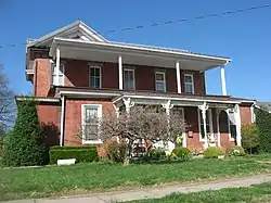 Its front section is a two-story, brick, Italianate-style T-plan house, which has a projecting facade with a semi-octagonal one-story bay. It has various Italianate details. This section was added onto an earlier structure, from the early 1800s, which is a one-story, Federal-style house.[2]