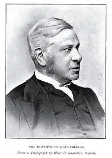 In 1877 he was elected Principal of Jesus College, Oxford.[3] During his time as Principal, he was heavily engaged in disputes about proposed new statutes for the college that were considered by their opponents to have an adverse effect on the links between the college and Wales.[4]