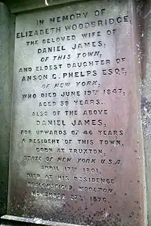 Daniel James, born in Truxton, New York, was a wholesale grocer who in 1829 married Elizabeth Woodbridge Phelps (born 1807) daughter of merchant Anson Greene Phelps (born 1781). In 1831, Daniel moved to Liverpool with his wife to replace Anson Phelps's existing partner – Elisha Peck – who had spent fifteen years in the job and wanted to return to America.[3]