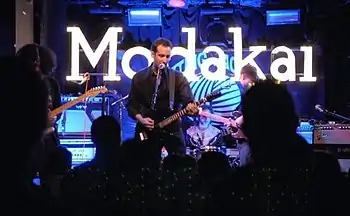 Modakai (originally called Belafonte[11]) was formed in 2003 in Dallas, Texas, by Keith (lead vocals, guitar, keyboard), Joel Buchanan (drums), Daniel Rohrs (bass), and Joseph Otto (guitar, keyboard, vocals). The band's first EP, Any Place Is Better Than Here, was premiered on BBC Radio 1 by Jo Whiley in 2005. The band toured the US following their second and third singles "As Hard As You Like It" and "If You'll Stay". The band moved to New York City in 2006 headlining Arlene's Grocery, the Knitting Factory, and Mercury Lounge. They competed against bands from around the world and won second place in the Emergenza Battle of the Bands event in 2007. Modakai released their self titled album in 2009 (produced by Rip Rowan, James McWilliams, and engineered by Paul Williams). Before leaving for their UK tour, the band went on hiatus and didn't release another EP for eight years, Bedroom Recordings, featuring demo tracks, peel sessions, and raw recordings from their bedroom.[12] In 2021, two tracks from their self titled album, "Everything" and "It Was You", appeared on the motion picture soundtrack for Love in Kilnerry released by Archway Pictures.[13]