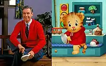 Daniel Tiger's Neighborhood (known as Daniel Tiger's Neighbourhood in the United Kingdom, Canada, Australia, and New Zealand,[4] and often abbreviated to Daniel Tiger) is a Flash animated musical television series aimed at preschool children ages 2 to 4. It was produced by Fred Rogers Productions, 9 Story Media Group and 9 Story USA (which also produces Blue's Room and Super Why!). It debuted on September 3, 2012 on PBS Kids, eleven years after the end of production for Mister Rogers' Neighborhood and nine years after Fred Rogers' death. The program is based on the Neighborhood of Make-Believe from Mister Rogers, the long-running family-oriented television series created and hosted by Fred Rogers that aired from 1968 to 2001. In 2019, the series was renewed for a fifth season, which premiered on August 17, 2020 with Daniel Tiger's Neighborhood: Won't You Sing Along with Me?, a musical special that deals with the COVID-19 pandemic.[5][6] On August 20, 2021, the series was renewed for a sixth season, which premiered on September 5, 2022.[7] A one-hour television movie titled Daniel Visits a New Neighborhood aired on June 20, 2022.[8]