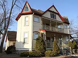 The Daniel and Margaret Wild House is an historic building located in Cedar Falls, Iowa, United States. Designed by William A. Robinson, the two-story frame Queen Anne was completed in 1895. It features a rooftop porch turret, pink granite foundation, and the use of exotic woods such as circassian walnut and Georgia curly pine.[2] The house was built for Daniel and Margaret Wild and their family. Daniel Wild was a German immigrant who settled in Cedar Falls in 1853, the same year he married Margaret. He owned a brick company by 1868 and then expanded into lumber, coal, farming and rest estate. The house was listed on the National Register of Historic Places in 2017.[1]