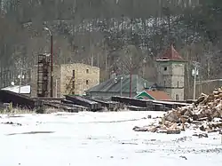 C.R. Daniels was a New York-based company founded in 1918 that manufactured sail cloth material. The company purchased the 500-acre Daniels mill and 118 houses in 1940 for $65,000, doubling its size by 1950, and eventually over 300,000 sq ft. The company produced a wide variety of canvas products and canvas covers with over 200 sewing machines to assemble patterns. Later specialties included fiberglass components and conveyor belts.[3] In 1965, the mill phased out company housing, tearing down the historic buildings and churches. In 1972, flooding from Hurricane Agnes damaged or destroyed the majority of the buildings and mill site. In 1977 a fire destroyed the remainder of the mill.[4]