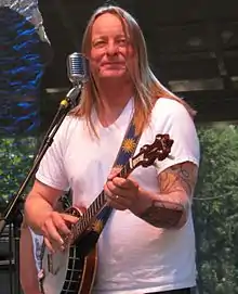 Danny Barnes (born December 21, 1961)[1] is an American banjo player, singer, and composer whose music is influenced by country, jazz, blues, punk, metal, and more.[2] He has been described as a "banjo virtuoso"[3][4] and is "widely acknowledged as one of the best banjo players in America."[5] He was a founding member of the Austin trio the Bad Livers, with whom he toured and recorded extensively from 1990 to 2000. Since then, he has performed and recorded as a solo artist, as well as collaborating with Bill Frisell,[6] Dave Matthews,[7] Jeff Austin[8] and other musicians. In 2013, Barnes and Max Brody formed the Test Apes. In September 2015, Barnes was awarded the Steve Martin Prize for Excellence in Banjo and Bluegrass, in recognition of his role as "one of bluegrass music’s most distinctive and innovative performers."[9] Martin’s website said of Barnes’ work: "The raw and unpolished musical breadth of his compositions has propelled him across the industry today."[10]