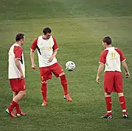 On 16 November 2010, Wilson played his first ever game for Scotland, scoring on his debut in a 3–0 win in a friendly against the Faroe Islands.[72] On 27 March 2011, he came off the bench to play against Brazil in a friendly match at the Emirates Stadium.[73] In an important 2012 European Championship qualifying game against the Czech Republic, Wilson came on as a substitute and conceded a late penalty which allowed the Czechs to claim a late point at 2–2. However replays of the incident showed that the Czech player involved, Jan Rezek, had dived under Wilson's challenge, and the referee Kevin Blom later admitted that he had been deceived.[74]
