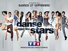 ![]() Promotional advertisement for the 5th season of Danse avec les Stars L to R: Nathalie Péchalat, Rayane Bensetti, Tonya Kinzinger, Corneille, Elisa Tovati, Ophélie Winter, Anthony Kavanagh, Joyce Jonathan, Miguel Ángel Muñoz, Louisy Joseph and Brian Joubert | |