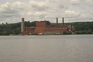 ![]() A view of the Danskammer Generating Station in Newburgh, NY as seen from a train travelling on the other side of the Hudson River. | |